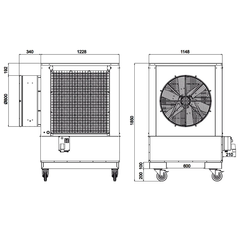 - Portata aria ventilatore: 18000m3/l