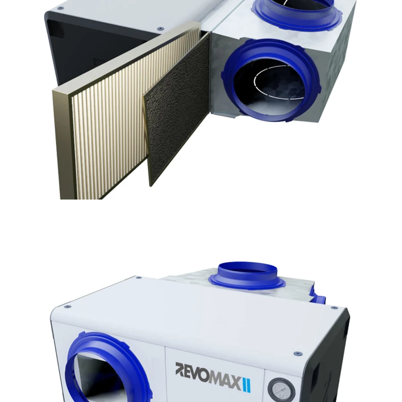 Además, las unidades RevomaxII estarán equipadas con un mando a distancia inteligente de 7 pulgadas que puede conectarse a Internet mediante Wi-Fi o por cable. Con él podrá controlar RevomaxII a distancia y recibir alarmas y alertas por correo electrónico.