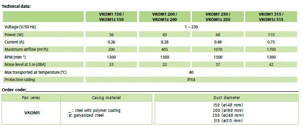 Aspiratori Assiali Industriali Vents VKOM - Diametri 150, 200, 250 e 315 mm